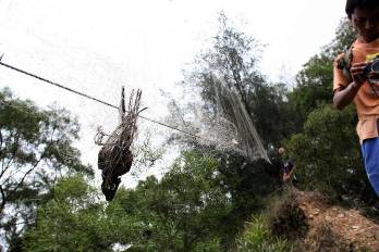 繼3月份開展的項(xiàng)目區(qū)居民和公眾的鳥類保護(hù)意識(shí)問卷基線調(diào)查活動(dòng),和4月份志愿者深入社區(qū)小學(xué)開展環(huán)境教育課的活動(dòng)之后,項(xiàng)目實(shí)施機(jī)構(gòu)組織志愿者進(jìn)行了3次巡山活動(dòng),對(duì)25個(gè)捕鳥者常去的地點(diǎn)進(jìn)行了地理坐標(biāo)標(biāo)注,參與巡山的志愿者24人次,護(hù)林員兼向?qū)?人次,公安部門3人次。當(dāng)?shù)鼐用?1人次參加整理林間便道,配合公安部門收繳和破壞捕鳥網(wǎng)具3套、誘捕畫眉的手機(jī)(播放雄性畫眉鳥叫聲的鈴聲)1臺(tái)。