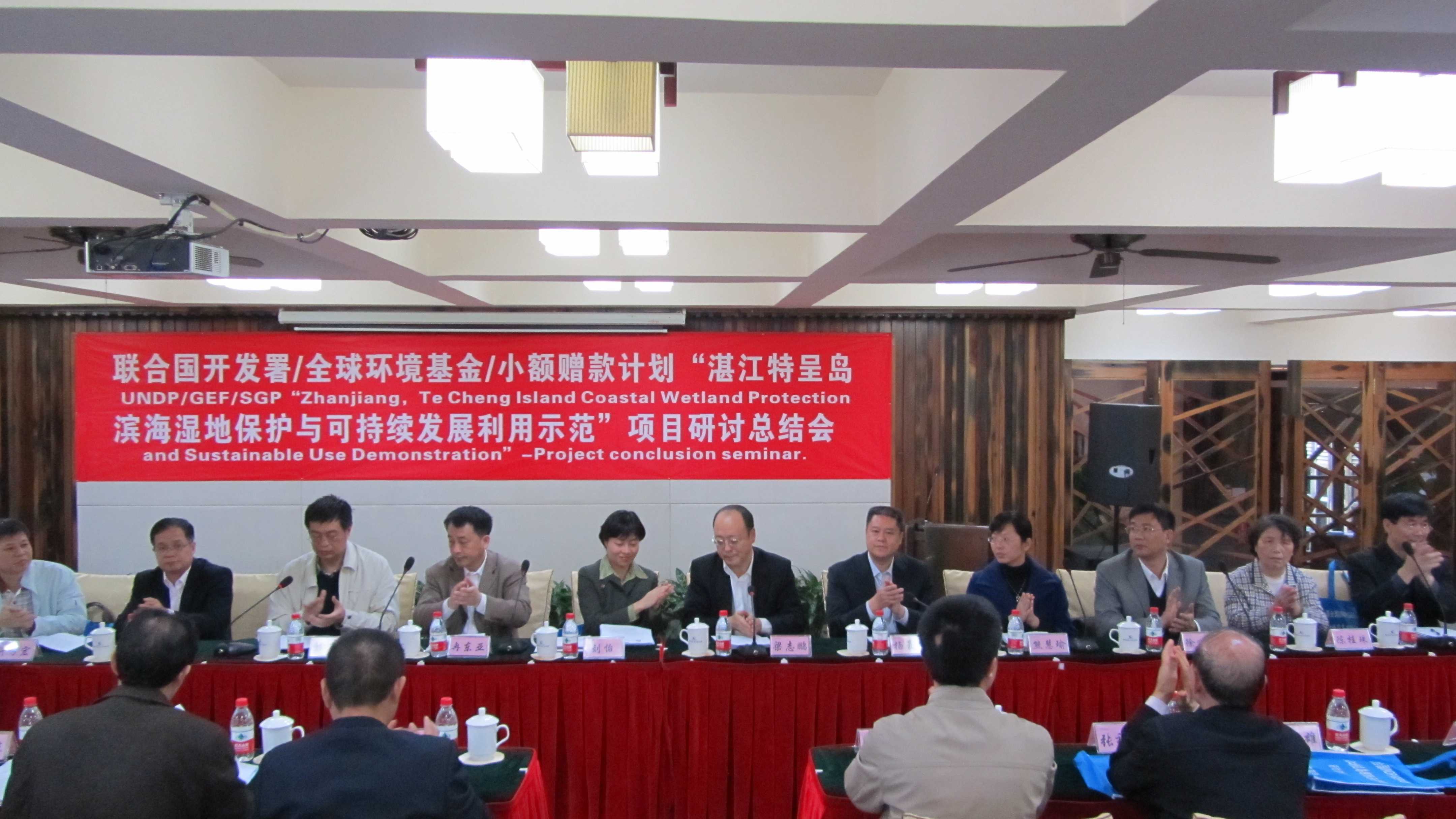 2011年2月27日,由廣東省生態(tài)學(xué)會組織承辦的聯(lián)合國UNDP/GEF/SGP “特呈島濱海濕地保護(hù)與可持續(xù)發(fā)展利用示范”項目研討總結(jié)會,在特呈島度假村多功能會議廳隆重舉行。會議由廣東省科學(xué)技術(shù)協(xié)會、湛江市人民政府、廣東省生態(tài)學(xué)會、中山大學(xué)濕地研究中心為主辦單位;由湛江市科學(xué)技術(shù)協(xié)會、湛江市霞山區(qū)人民政府為協(xié)辦單位;由廣東省生態(tài)學(xué)會和特呈島建設(shè)與發(fā)展管理辦公室具體承辦。廣東省科協(xié)秘書長楊豪標(biāo)、湛江市政府副市長梁志鵬、湛江市科協(xié)主席黃東云、霞山區(qū)政府副區(qū)長熊慧瑜等領(lǐng)導(dǎo),聯(lián)合國開發(fā)計劃署國家項目協(xié)調(diào)員劉怡女士、全球環(huán)境基金中國項目國家指導(dǎo)委員會委員冉東亞先生,及專家、媒體和當(dāng)?shù)厣鐓^(qū)代表共150多人出席會議。