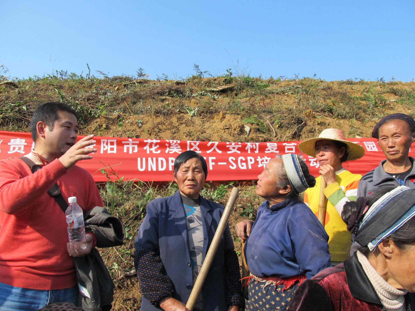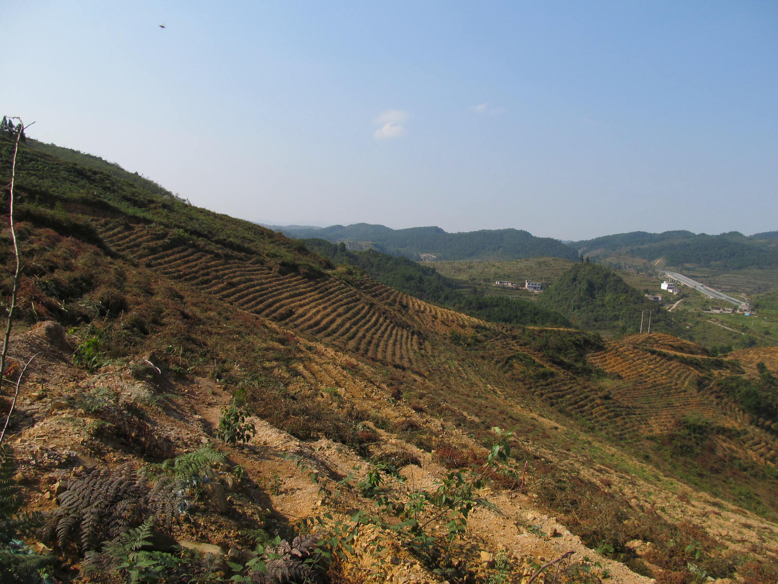 貴州省貴陽市花溪區(qū)位于黔中腹地,全區(qū)地貌以山地和丘陵為主。項目點久安村位于花溪區(qū)西北部,海拔1400米左右,境內居住著漢、布依、苗等民族,人均年收入不足1200元,為花溪區(qū)典型貧困村。該區(qū)農業(yè)生產大多沿用傳統(tǒng)的刀耕火種,陡坡耕種,廣種薄收的方式,山多平地少,加上過度樵采,又缺乏必要的水保措施和科學的耕種方式,充沛而集中的降水常使得土壤易被沖蝕,導致部分土地退化,加上喀斯特石山區(qū)土層薄,基巖出露淺,暴雨沖刷力強,水土流失后巖石逐漸凸現(xiàn)裸露, 隨著時間的推移,土地退化和水土流失的程度和面積不斷加大,貧瘠的土地使得生產力低下,又加劇了當?shù)氐呢毨А?/p>