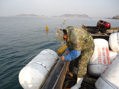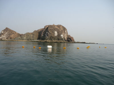啟動儀式后,項目組織在元寶島以牛心坨為中心的海域上施工。在海底打木柱固定海面上的漂浮圍纜,至5月元寶島完成了以牛心坨為中心設(shè)置近1000米的漂浮圍纜隔離帶工程,杜絕了人從海面方向?qū)谀樑樅推渌B類的干擾。