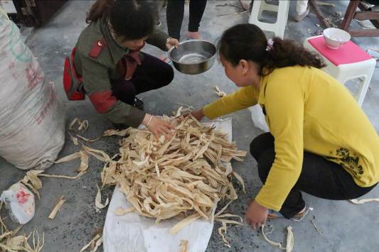 現(xiàn)場培訓(xùn)包括秸稈處理、編繩、塑形、鞋帶編織、粘接、成品檢驗六個環(huán)節(jié),每個環(huán)節(jié)結(jié)束后還通過比賽獎勵優(yōu)秀學(xué)員,105人參加了培訓(xùn)。38歲的村民耿曉玉說“以前我們沒事就是打麻將,都想干點啥,可是又不知道干什么。沒有想到以前當(dāng)火燒的玉米葉還能制作工藝品,既能賺錢還能保護(hù)環(huán)境,參加培訓(xùn)班,老公很支持,不像以前干什么都反對。”
