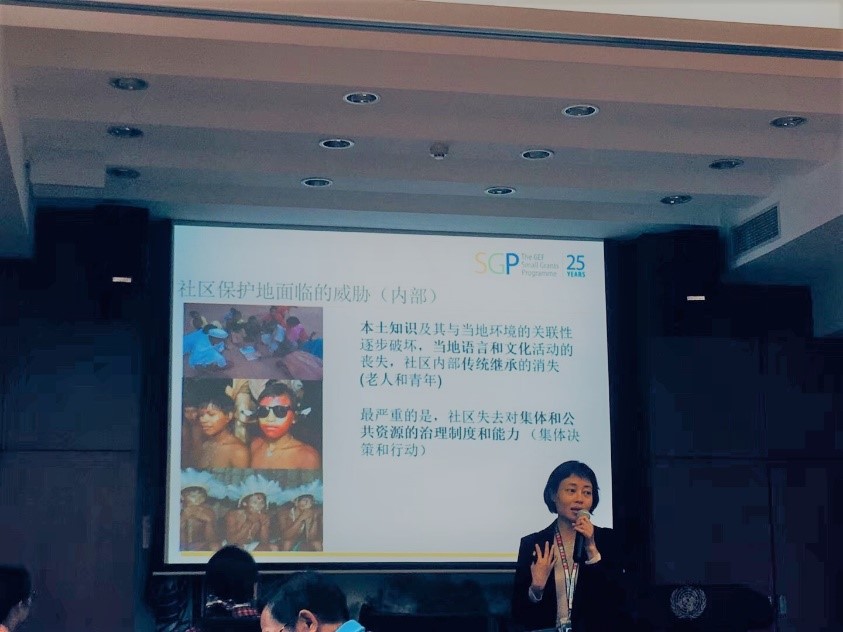 在研討會(huì)的第二天,國(guó)家項(xiàng)目協(xié)調(diào)員劉怡在回顧了前一天的培訓(xùn)內(nèi)容后,為大家重點(diǎn)介紹了社區(qū)保護(hù)地的概念、現(xiàn)狀、政策以及社區(qū)保護(hù)地的國(guó)際注冊(cè)。來(lái)自聯(lián)合國(guó)婦女署的項(xiàng)目官員馬雷軍博士在之后開(kāi)展了社會(huì)性別的基本概念和聯(lián)合國(guó)社會(huì)性別平等標(biāo)準(zhǔn)的講座,針對(duì)社會(huì)性別平等的國(guó)際標(biāo)準(zhǔn)以及在中國(guó)的實(shí)踐進(jìn)行了分享,并強(qiáng)調(diào)了社會(huì)性別視角在環(huán)境項(xiàng)目實(shí)施中的重要性。