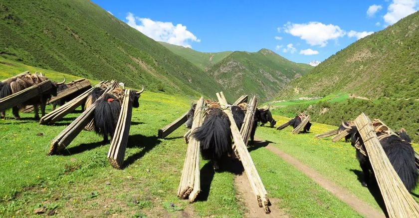 牛糞是青藏高原農(nóng)牧民普遍使用的燃料。然而在尕麥村社區(qū),由于雨水多、地形陡峭導(dǎo)致牛糞不易干,潮濕的牛糞又容易滋生菌蟲,將之燃燒又與當(dāng)?shù)厝思蓺⑸牧?xí)俗相違,所以在70%森林面積,20%草甸覆蓋,林木草場資源豐富的尕麥村,當(dāng)?shù)啬撩駨?0世紀(jì)70年代就開始大量砍伐森林,就地取材,搭牛棚、建房子,更多地是用木材來做燃料。如今,當(dāng)?shù)厝艘廊涣?xí)慣于砍伐柏木來獲取生活燃料,二三十頭牦牛拉著成捆的木材一度蔚然成景。但是,玉樹州大部分地區(qū)由于高寒缺氧,森林資源極為稀少,只有在囊謙等少數(shù)地區(qū)分布有限的天然林資源,這種天然的柏樹林在高原極為稀有,尕麥村群眾砍伐柏木當(dāng)柴,對當(dāng)?shù)匕貥淞稚鷳B(tài)系統(tǒng)造成嚴(yán)重的威脅,且伐木工作通常均由女性完成,當(dāng)?shù)啬静脑诳撤ミ^程中會產(chǎn)生有害氣體,對女性的健康非常不利。經(jīng)過項目組研究,他們發(fā)明了竹杠晾曬牛糞的方法,可以更快、更好地將牦牛牛糞晾曬干后儲存起來,作為日常生活的燃料使用。用牛糞作燃料除了經(jīng)濟(jì)實惠還能起到消毒殺菌的作用,現(xiàn)在已經(jīng)成為當(dāng)?shù)厝酥饕娜剂蟻碓矗挚撤ビ辛嗣黠@減少。據(jù)統(tǒng)計,80%的社區(qū)牧民不合理采伐柏木的行為得到有效管理,1000株柏木的資源得到可持續(xù)的保護(hù)。