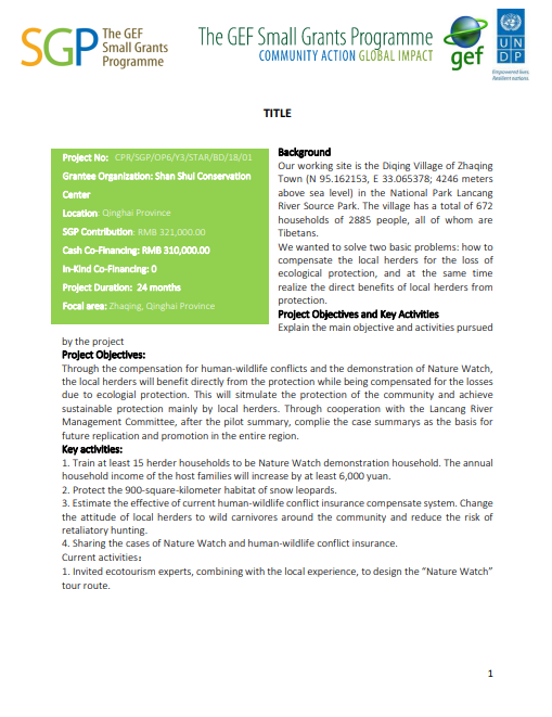 該項(xiàng)目通過(guò)開展以社區(qū)為基礎(chǔ)的雪豹保護(hù)相關(guān)活動(dòng),探索有效的社區(qū)保護(hù)方案,加強(qiáng)雪豹監(jiān)測(cè)網(wǎng)絡(luò)體系,使人獸沖突得到減緩,并推廣項(xiàng)目相關(guān)成果和技術(shù)經(jīng)驗(yàn)。
