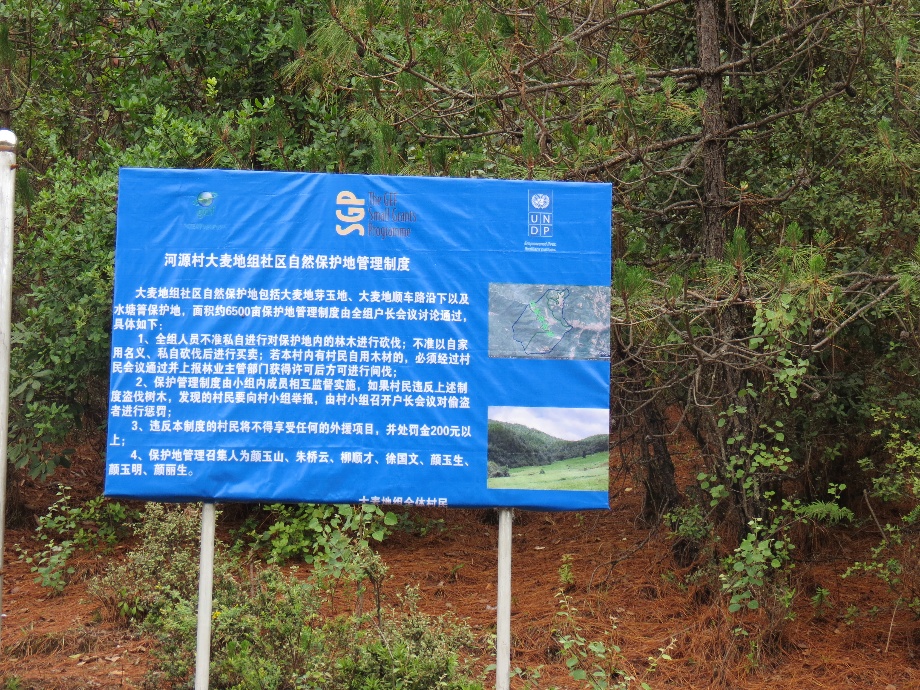 經(jīng)過(guò)不斷的爭(zhēng)論、妥協(xié),全村14個(gè)村民小組中的12個(gè)小組已經(jīng)建立了社區(qū)保護(hù)地,總面積近4萬(wàn)畝。保護(hù)地的位置邊界、管理制度,管理人員都是由村民自己討論決定。在討論中,村民創(chuàng)造性的將社區(qū)保護(hù)地的管理與之前實(shí)施村寨銀行結(jié)合起來(lái),并在保護(hù)地管理制度作出明確規(guī)定“在封山育林期間,如有發(fā)現(xiàn)本村寨農(nóng)戶有偷盜現(xiàn)象照價(jià)賠償外,不予以借貸項(xiàng)目貸款一個(gè)周期(即3年),性質(zhì)惡劣者,將永遠(yuǎn)不能享受項(xiàng)目貸款”。這樣的制度用一定的經(jīng)濟(jì)手段規(guī)范村民對(duì)森林資源的利用方式。