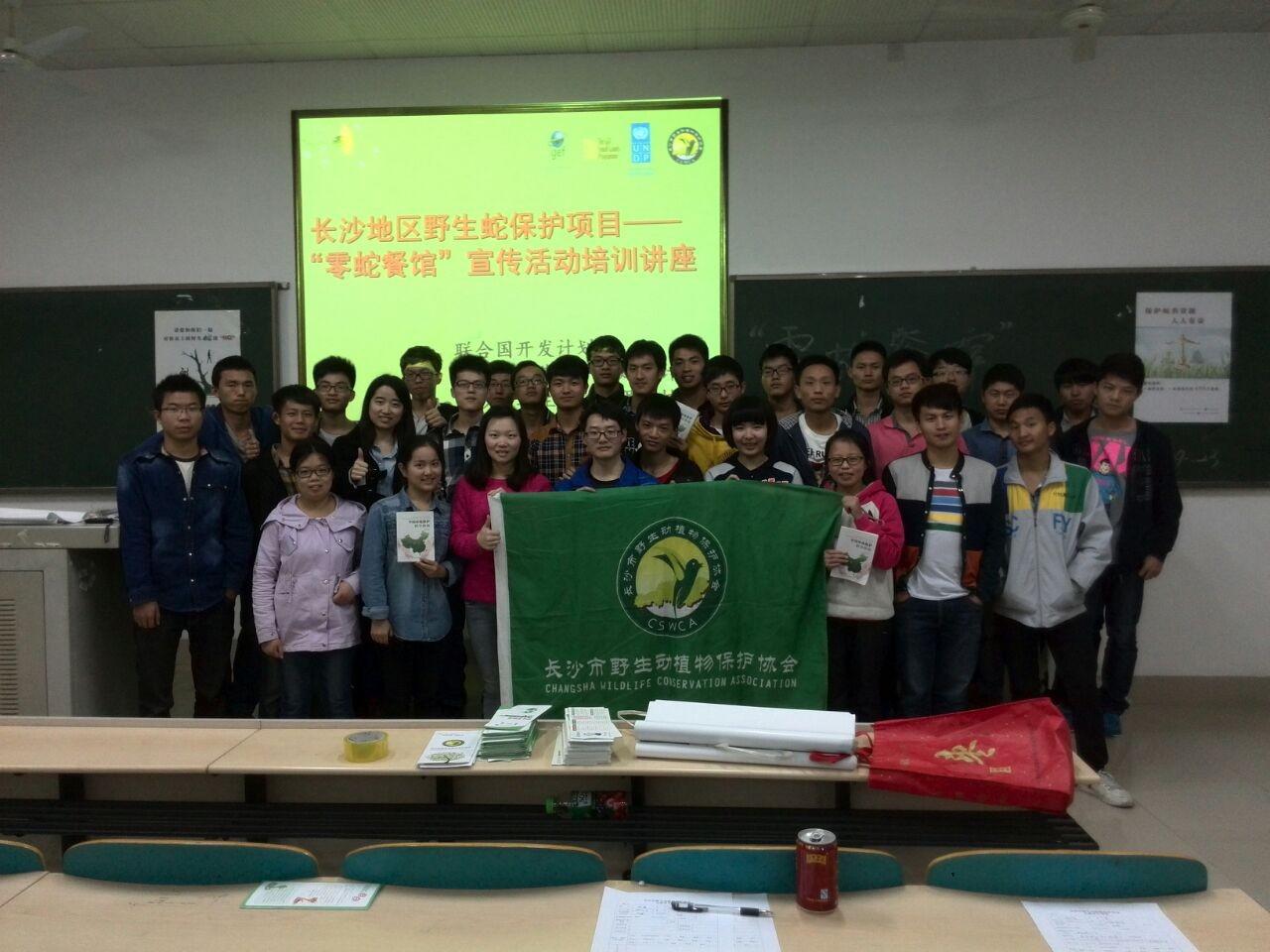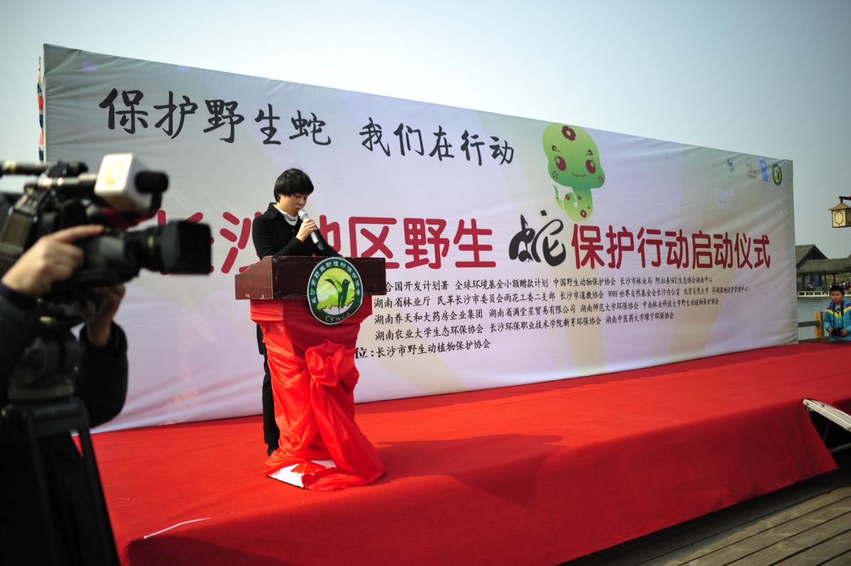 2014年3月16日,由聯(lián)合國(guó)開發(fā)計(jì)劃署、全球環(huán)境基金小額贈(zèng)款計(jì)劃、中國(guó)野生動(dòng)物保護(hù)協(xié)會(huì)、SEE生態(tài)協(xié)會(huì)湖南中心共同主辦,長(zhǎng)沙市野生動(dòng)植物保護(hù)協(xié)會(huì)承辦,12家相關(guān)單位共同協(xié)辦的“長(zhǎng)沙地區(qū)野生蛇保護(hù)行動(dòng)”啟動(dòng)儀式隆重舉行。社會(huì)各界人士共計(jì)500余人參加了這一儀式。活動(dòng)拉開了長(zhǎng)沙地區(qū)野生蛇保護(hù)行動(dòng)的序幕,來(lái)自全國(guó)20多家媒體對(duì)活動(dòng)進(jìn)行了現(xiàn)場(chǎng)報(bào)道,通過(guò)宣傳,使得野生蛇保護(hù)成為社會(huì)熱點(diǎn)話題,吸引了大批社會(huì)公眾對(duì)活動(dòng)的關(guān)注與參與。