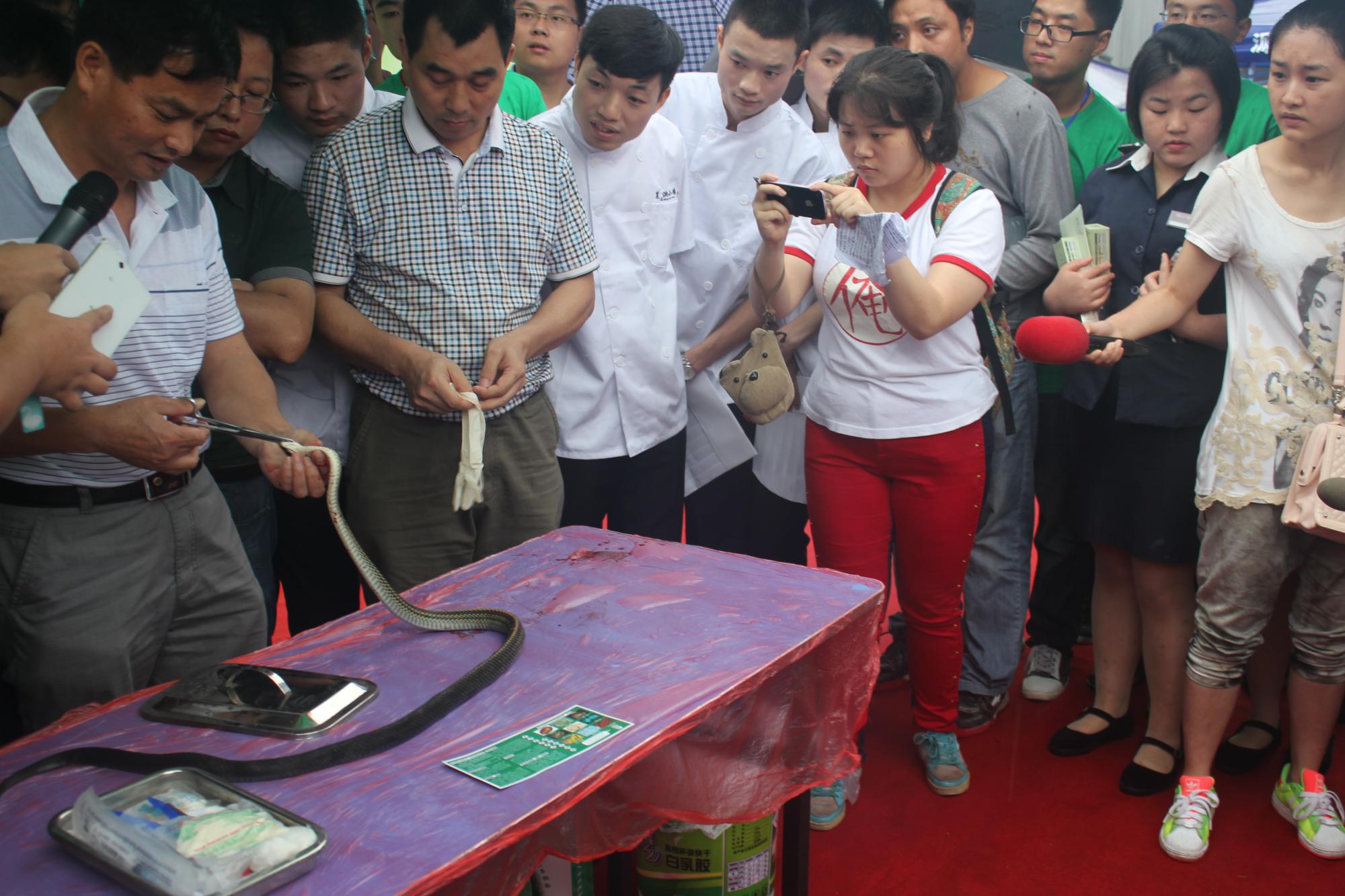 2014年6月5日,協(xié)會(huì)與開福區(qū)政協(xié)聯(lián)合主辦了“關(guān)注食品安全,拒食野生動(dòng)物”主題公益宣傳活動(dòng)。民間蛇王龔新國(guó)老師現(xiàn)場(chǎng)解剖野生蛇和人工養(yǎng)殖蛇,野生蛇體內(nèi)取出的鮮活的寄生蟲教育市民樹立正確的飲食觀,自覺抵制餐桌上的野生蛇。活動(dòng)現(xiàn)場(chǎng)還設(shè)置了環(huán)保互動(dòng)答題、生態(tài)游戲、食品安全知識(shí)講解等環(huán)節(jié)。現(xiàn)場(chǎng)有400多名社會(huì)公眾參與了活動(dòng),23家媒體參與了報(bào)道。