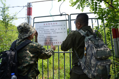 4月下旬至5月初,為控制上島人數(shù),協(xié)會配合莊河市林業(yè)局野保站在元寶島安裝2.5米×300米固定鐵絲網(wǎng)柵欄,并組織志愿者到元寶島安裝固定警示牌匾。