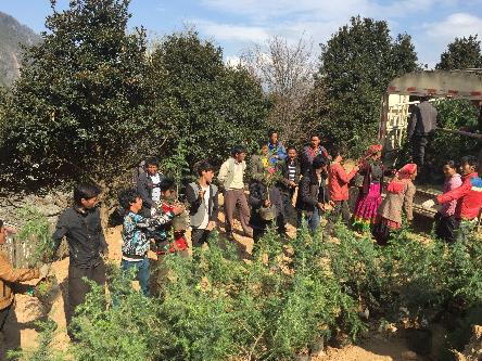 2015年3月,波多羅村民們經(jīng)過實地考察和多方詢價,向玉龍縣巨甸鎮(zhèn)林業(yè)局購買了1000棵榧木,33戶村民每戶負(fù)責(zé)種植并管理30棵。云南榧木是一種可生長百年的本地樹種,其木材因質(zhì)地堅硬、紋理漂亮、氣味芬芳,十分珍貴。上世紀(jì)八十年代以來,遭到瘋狂盜砍,導(dǎo)致云南榧木成為國家二級保護的瀕危樹種。種植榧木既可帶來保護物種的長期生態(tài)效益,又可帶來經(jīng)濟收入。并且榧木有驅(qū)蟲的作用,套種藥材可以抑制蟲害。2016年春,村民在進村約三公里的道路旁的荒地上種植楊樹約三千株,保持水土,防止滑坡和泥石流等災(zāi)害發(fā)生。
