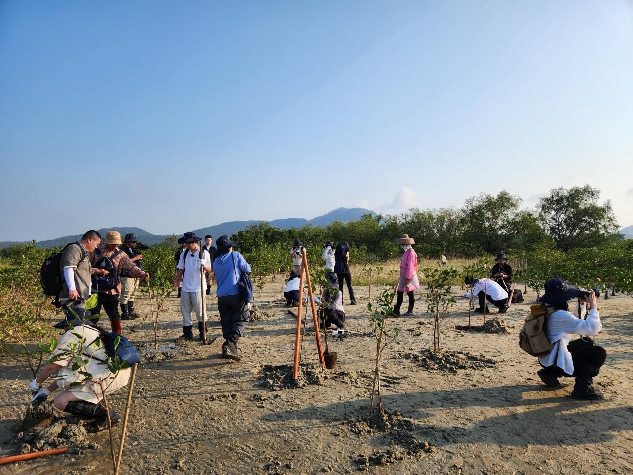 在提升居民對(duì)參與濕地與紅樹林保護(hù)意識(shí)提升方面,項(xiàng)目組攜同海陵島紅樹林國(guó)際濕地公園管理處和平蘭村村委,邀請(qǐng)中山大學(xué)專家為村民開展紅樹林保護(hù)相關(guān)課程培訓(xùn);引進(jìn)暨南大學(xué)環(huán)境學(xué)院人才,以海陵島平蘭村為學(xué)生創(chuàng)新創(chuàng)業(yè)實(shí)踐基地,成立“護(hù)民益濕”項(xiàng)目。學(xué)生志愿團(tuán)在平蘭村開展了紅樹林知識(shí)科普主題培訓(xùn)活動(dòng);引進(jìn)華南師范大學(xué)生命科學(xué)學(xué)院“樹”通民脈實(shí)踐團(tuán),開展生態(tài)建設(shè)交流活動(dòng),該校師生團(tuán)隊(duì)圍繞紅樹林濕地保護(hù)修復(fù)項(xiàng)目、古樹名木保護(hù)等開展調(diào)研,并向村民進(jìn)行綠美廣東生態(tài)建設(shè)的科普。