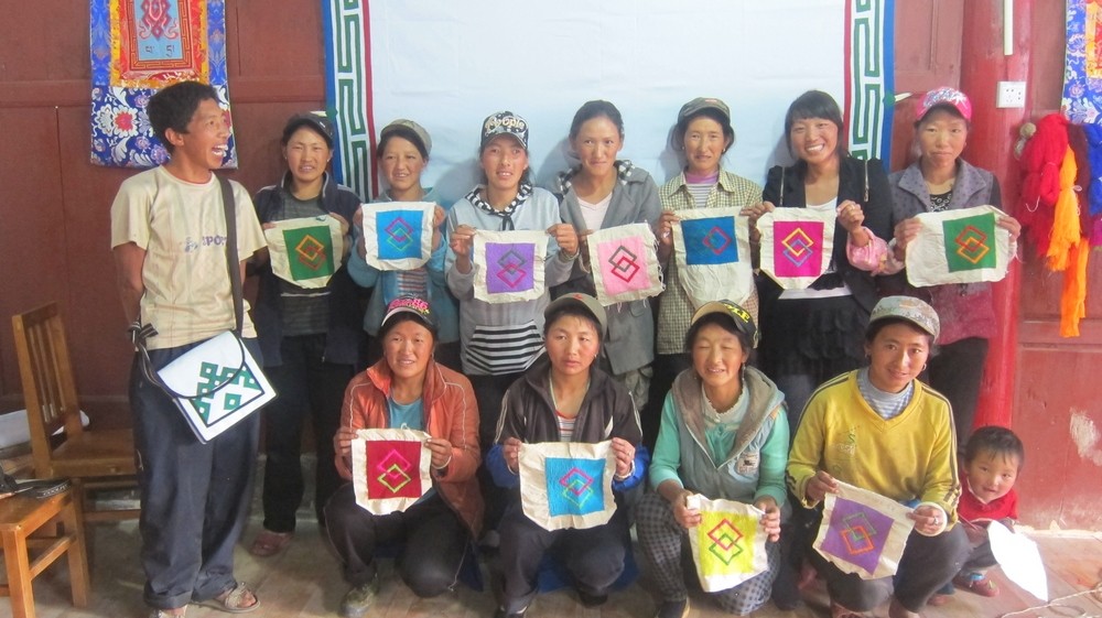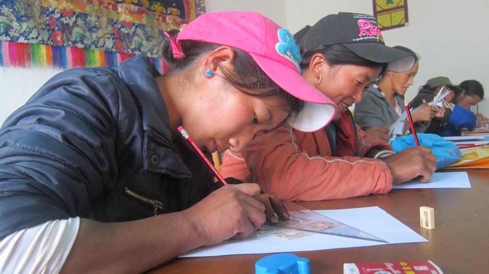 2014年5月、10月及2015年1月,項(xiàng)目支持開(kāi)展了三期婦女藏繡培訓(xùn)班。培訓(xùn)班面向社區(qū)婦女,在巴珠社區(qū)學(xué)習(xí)中心舉辦,累計(jì)培訓(xùn)140人次。培訓(xùn)期間,學(xué)會(huì)的藏繡講師布都展示了他的部分藏繡作品。并邀請(qǐng)了來(lái)自本地5個(gè)村小組的手工藝者,教授年輕人制作巴珠特有的傳統(tǒng)氆氌的基本方法。